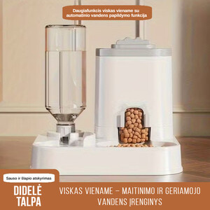 Integruotas automatinis maisto ir vandens dozatorius naminiams gyvūnams