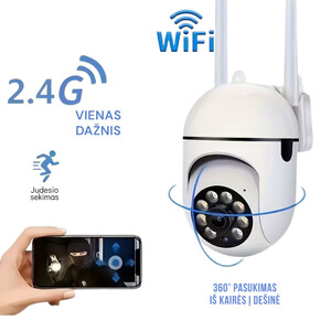 Užtikrinkite savo namų ar biuro saugumą su šia modernia išmaniąja 1080P WiFi stebėjimo kamera. Ji pasižymi 360° sukimosi ir 90° pakreipimo funkcija, todėl leidžia stebėti visą patalpą be „aklųjų zonų“.