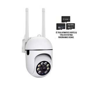 Vaizdo įrašymo raiška Full HD 1080P Sukimosi kampas 360° horizontaliai , 90° vertikaliai Maitinimo režimas USB Darbinė įtampa ≤36V Baterijos savybės Be baterijos Valdymo būdas Mobilioji programėlė (Android/iOS) Įspėjimo tipas Garso signalas Išskirtinės savybės Dvipusis garsas , Naktinis matymas , Wi-Fi ryšys Priartinimas (Zoom) Taip Darbinė temperatūra 0°C – +50°C Vaizdo įrašymo saugojimas Debesų saugyklą (Cloud Storage) , microSD