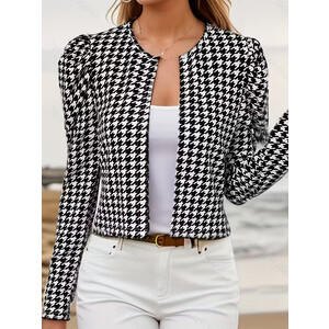 Elegantiškas moteriškas švarkelis juodai baltu raštu