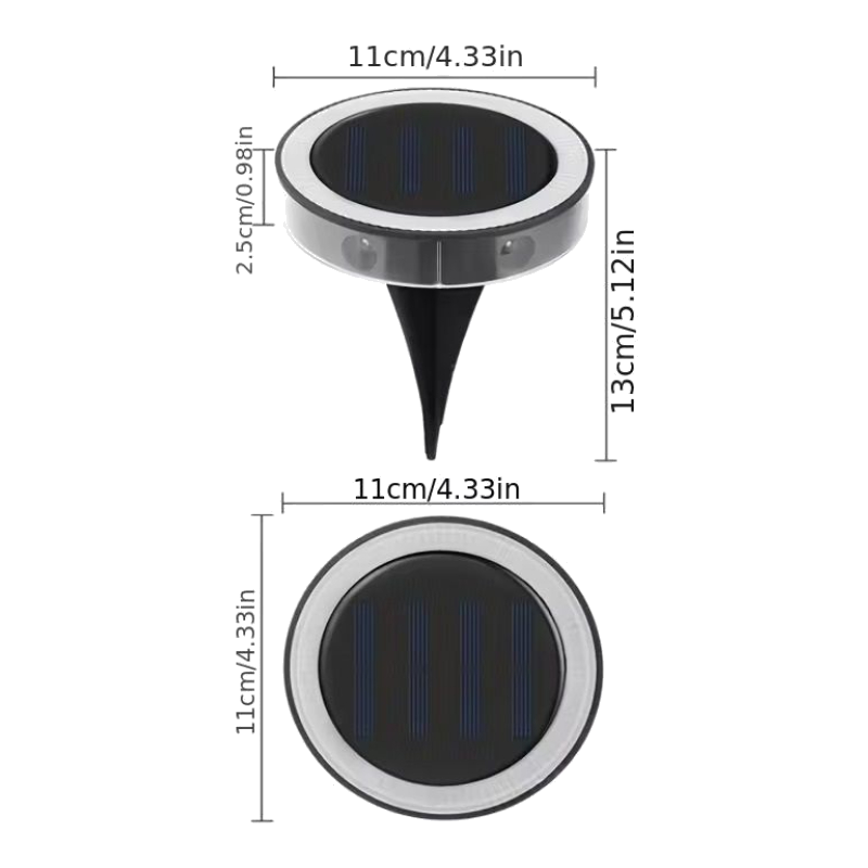 Medžiaga Aukštos kokybės plastikas LED kiekis 1 vnt. Išskirtinės savybės Energiją taupantys , Saulės baterija Baterija Nikelio baterija Baterijos talpa 600 mAh Darbinė temperatūra -20°C iki +50°C Atsparumas vandeniui IP65 (atsparūs lietui, tinkami lauko sąlygoms) Nuotolinio valdymo pultas Ne Apšvietimo režimai Balta šviesa Montavimas Įleidžiamas į žemę , Ant sienos