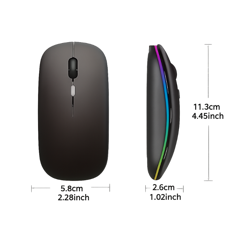 PAGRINDINIAI PRIVALUMAI🔄Dvigubas ryšysBluetooth 5.1 + 2.4 GHz USB imtuvas – persijungimas tarp įrenginių vienu mygtuku.🔇Tylus paspaudimasIdealu darbui biure, bibliotekoje ar naktį – nesigirdi spragsėjimo.🔌USB-C įkrovimasNereikia baterijų – įkraunama ir naudojama pakartotinai.🌈LED apšvietimasModernus, švelnus LED efektas suteikia stilingą išvaizdą.