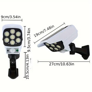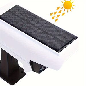 Medžiaga Aukštos kokybės plastikas , ABS plastikas LED kiekis 6 LED lemputės Išskirtinės savybės Energiją taupantys , Saulės baterija Baterija Ličio baterija Baterijos talpa 1200 mAh Darbinė temperatūra -20°C iki +50°C Atsparumas vandeniui IP65 (atsparūs lietui, tinkami lauko sąlygoms) Nuotolinio valdymo pultas Taip Apšvietimo režimai Balta šviesa Montavimas Ant sienos