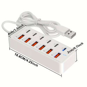 Įvestis USB maitinimas Išvestis 6 × Type-C PD , 6 × USB-A Maksimali galia 25 W (kiekviename lizde) Darbinė įtampa ≤ 36 V Medžiaga ABS plastikas Kabelio ilgis ~1 metras Spalva Balta