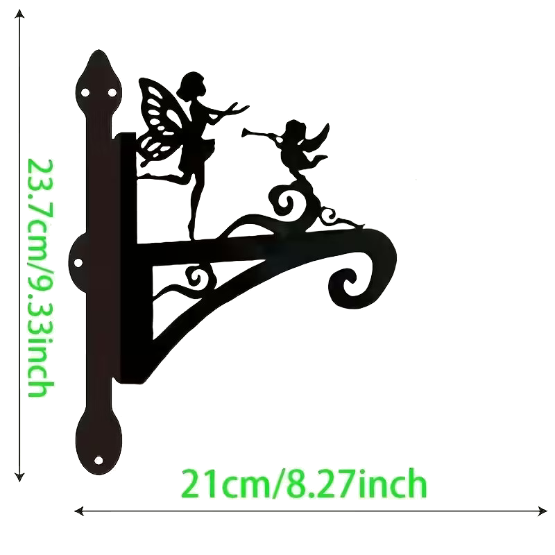 PAGRINDINIAI PRIVALUMAI🧚♀️Unikalus fėjų dizainasIšskirtinis dekoras suteikia aplinkai magišką ir žaismingą įspūdį.🔩Patvarus metalasGeležies konstrukcija užtikrina ilgaamžiškumą ir didelę apkrovą.🌦️Atsparūs oro sąlygomsPuikiai tinka tiek viduje, tiek lauke – atsparūs korozijai ir drėgmei.🛠️Lengvas montavimasGreitai ir patogiai pritvirtinami prie sienos ar medinės konstrukcijos.