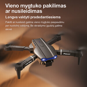 (Valdymas itin paprastas – pakilti ir nusileisti galima vienu mygtuku. Net jei tai jūsų pirmasis dronas, skrydis bus sklandus ir suprantamas)