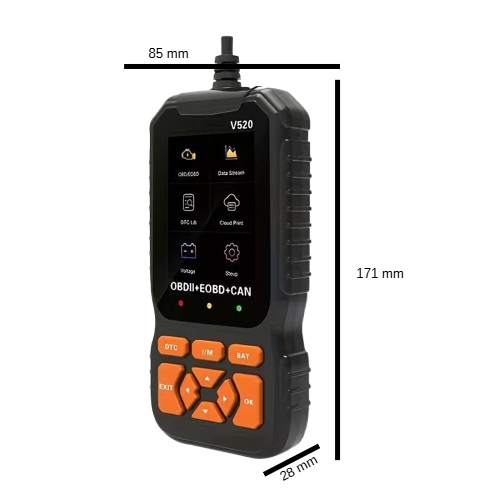 Spalvotas 2,8 colio ekranas užtikrina aiškų duomenų atvaizdavimą, o intuityvus meniu leidžia lengvai skaityti ir ištrinti klaidų kodus, tikrinti akumuliatoriaus įtampą, stebėti variklio duomenų srautą realiu laiku bei pasiruošimą techninei apžiūrai (I/M Readiness).