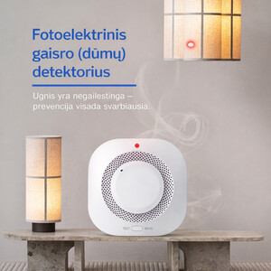 Šis modernus baltas dūmų detektorius sukurtas užtikrinti maksimalų jūsų namų, biuro ar kitos vidaus patalpos saugumą. Naudodamas fotoelektrinį jutiklį, jis greitai aptinka dūmus ir galimą gaisro pavojų dar ankstyvoje stadijoje.