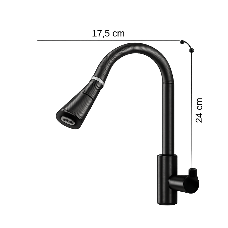 Šis modernus aukšto lanko virtuvės maišytuvas sukurtas patogiam ir efektyviam naudojimui kasdienėje virtuvėje. Ištraukiama purškimo galvutė leidžia lengvai plauti indus, vaisius, daržoves ar pasiekti sunkiai prieinamas kriauklės vietas.