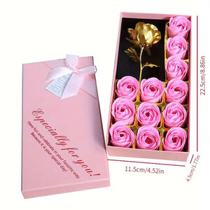 12 vnt. muilo rožių dovanų dėžutė ir dekoratyvine auksine gėle