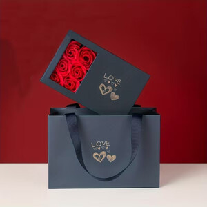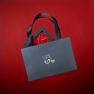 * Komplekte: dovanų dėžutė, rožės, atvirukas, dovanų maišelis