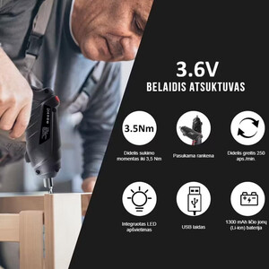 RINKINIO SUDĖTIS* 1 × 3,6 V belaidis elektrinis atsuktuvas