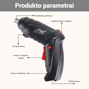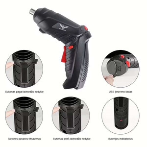 3,6 V belaidis elektrinis atsuktuvas "JENABOM" – 26 vnt. rinkinys su LED apšvietimu ir USB įkrovimu