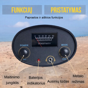 Didelis jautrumasAptinka įvairius metalus dideliame gylyje.Reguliuojamas aukštisPatogu tiek vaikams, tiek suaugusiems.Ausinių jungtisTikslesnė ir tylesnė paieška.Diskriminavimo režimasPadeda atskirti nereikalingus metalus.