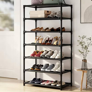7 aukštų metalinė batų lentyna - juodos spalvos